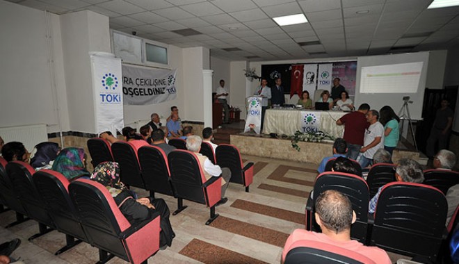 Toki tarafından yaptırılan 2 projede üretilen konutlara fazla talep gelince hak sahipleri 21 haziran cuma günü noter huzurunda yapılan kura çekilişiyle belirlendi.