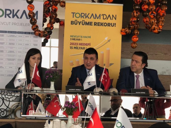 Torkam İnşaat Yönetim Kurulu Başkanı Mahmut Dereli, şirket olarak 2023 yılı iş hacmi hedeflerinin 15 milyar TL olduğunu söyledi.