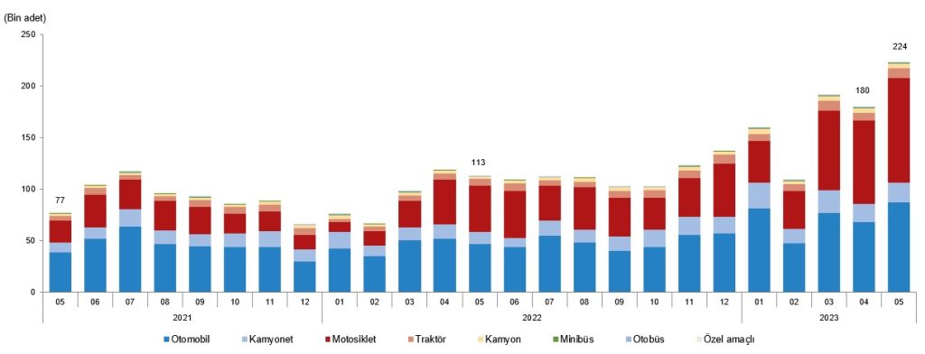 Trafiğe kaydı yapılan taşıt sayısı, Mayıs 2021-Mayıs 2023