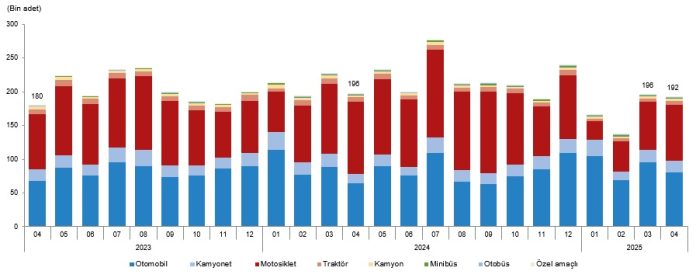 Trafiğe kaydı yapılan taşıt sayısı, Nisan 2023 – Nisan 2025