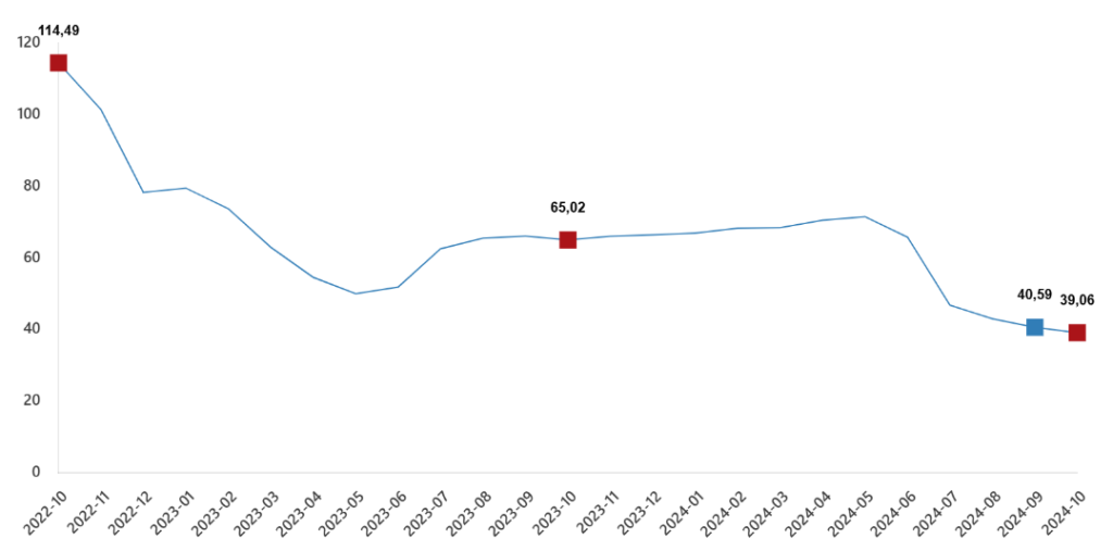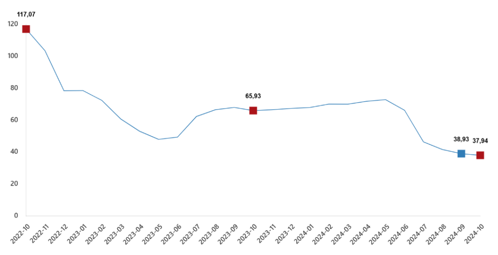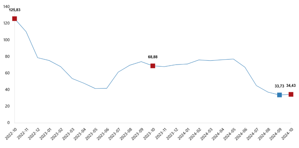 İnşaat maliyet endeksi yıllık değişim oranı(%), Ekim 2024