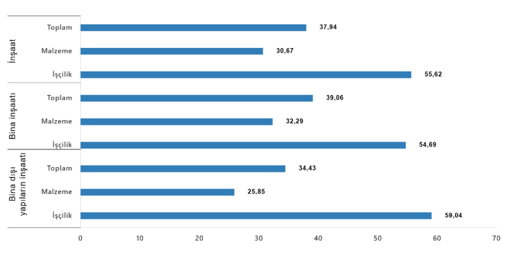 Bina inşaatı maliyet endeksi, bir önceki aya göre %1,33 arttı, bir önceki yılın aynı ayına göre %39,06 arttı. Bir önceki aya göre malzeme endeksi %1,52 arttı, işçilik endeksi %0,96 arttı. Ayrıca bir önceki yılın aynı ayına göre malzeme endeksi %32,29 arttı, işçilik endeksi %54,69 arttı.