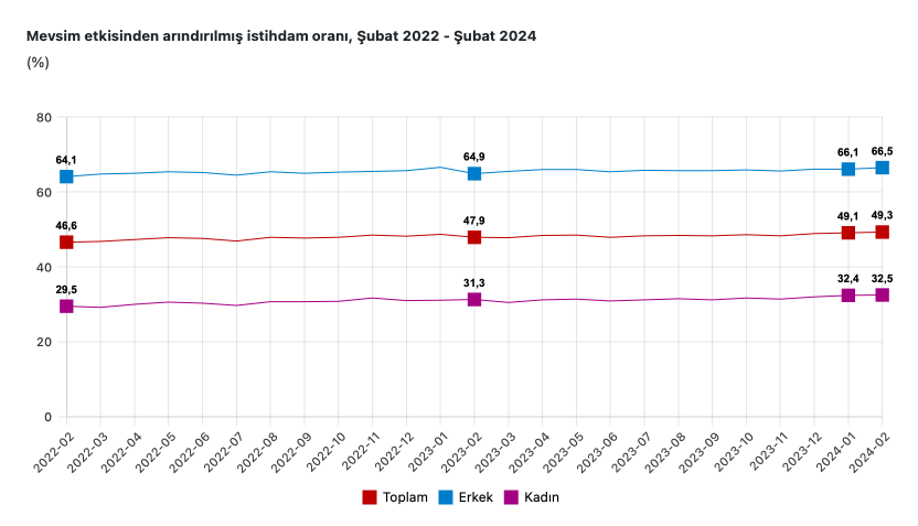 Mevsim etkisinden arındırılmış istihdam oranı %49,3 oldu