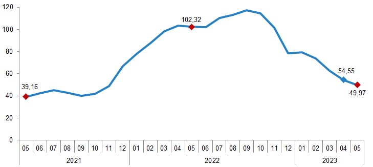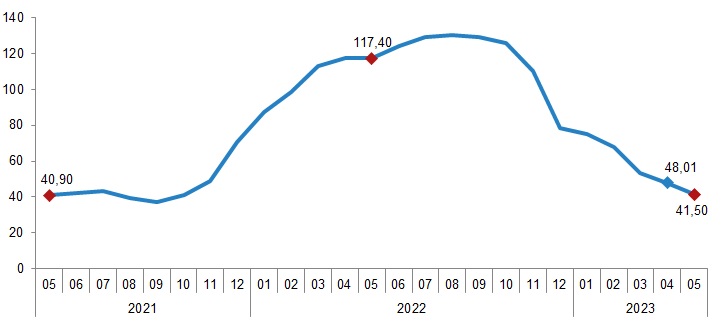 İnşaat maliyet endeksi yıllık değişim oranları (%), Mayıs 2023
