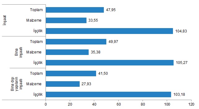 Bina inşaatı maliyet endeksi, bir önceki aya göre %0,77, bir önceki yılın aynı ayına göre %49,97 arttı. Bir önceki aya göre malzeme endeksi %0,60, işçilik endeksi %1,17 arttı. Ayrıca bir önceki yılın aynı ayına göre malzeme endeksi %35,38, işçilik endeksi %105,27 arttı.