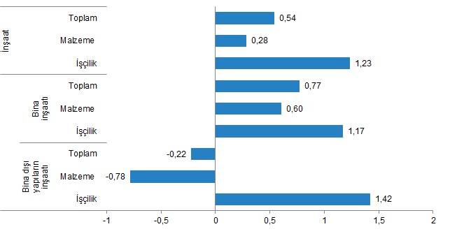 Bina dışı yapılar için inşaat maliyet endeksi, bir önceki aya göre %0,22 azaldı, bir önceki yılın aynı ayına göre %41,50 arttı. Bir önceki aya göre malzeme endeksi %0,78 azaldı, işçilik endeksi %1,42 arttı. Ayrıca bir önceki yılın aynı ayına göre malzeme endeksi %27,93, işçilik endeksi %103,18 arttı.