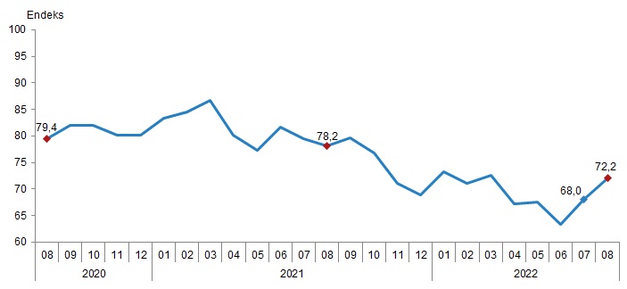Mevsim etkilerinden arındırılmış tüketici güven endeksi, Ağustos 2022