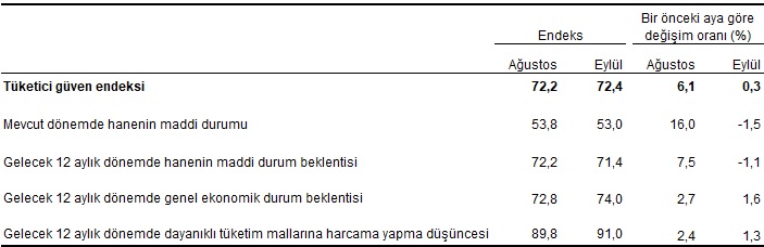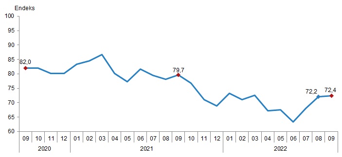 Mevsim etkilerinden arındırılmış tüketici güven endeksi, Eylül 2022