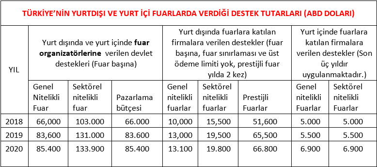 Kalkınmada çok önemli bir güce sahip olan fuarcılık sektörünün, Ticaret Bakanlığından alacağı destekler, ülkemizin 500 milyar doları aşan dünya fuar pazarından aldığı payın artmasını kolaylaştıracaktır. Fuar katılımcılarına verilen desteklerde de yurt içi ve yurt dışı ayrımının yerine, ihracata sağladıkları ölçülebilir katkı açısından bakılması, sektörün gelişimi açısından daha sağlıklı olacaktır.