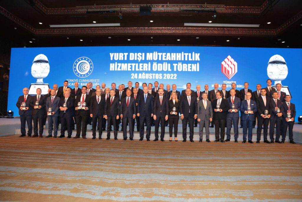 Bugüne kadar 131 ülkede üstlendikleri projelerle inşaat sektörünün başarısını tüm dünyaya tanıtan Türk müteahhitler, Cumhurbaşkanı Recep Tayyip Erdoğan, Cumhurbaşkanı Yardımcısı Fuat Oktay, Ticaret Bakanı Mehmet Muş, Hazine ve Maliye Bakanı Nureddin Nebati ve Dışişleri Bakanı Mevlüt Çavuşoğlu’nun da katıldığı bir törenle Türkiye Müteahhitler Birliği (TMB) tarafından ödüllendirildi.