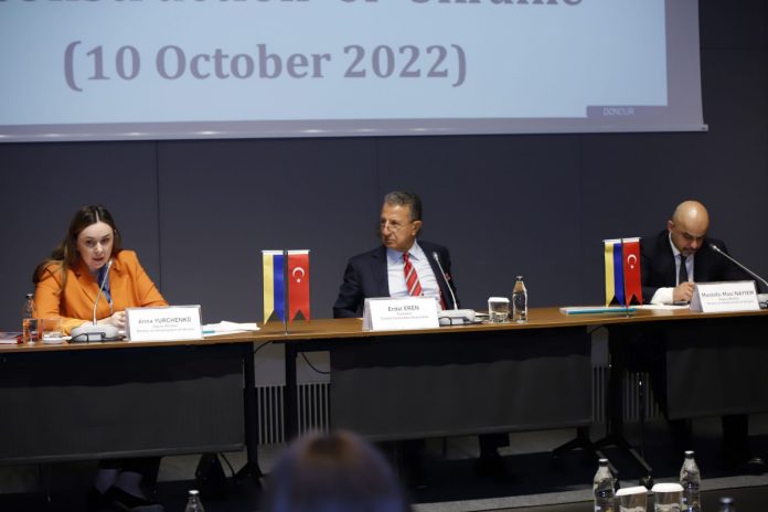 Altyapı Bakan Yardımcısı Mustafa Masi Nayyem, Ukrayna’nın yaralarını sarmak için uluslararası toplumun yardımına ihtiyaç duyduklarını ve bu kapsamda toplantıya Türk müteahhitlerin yoğun katılımından memnuniyet duyduklarını ifade etti. Konuk Bakanlardan Anna Yurchenko ise ülkedeki şu anki koşulların zorluğuna ve ülkenin her an saldırı altında olduğuna işaret ederek, Dünya Bankası’na göre Ukrayna alt ve üstyapısında şu ana kadar oluşan zararın 60 milyar ABD Doların üzerinde olduğunu aktardı. Yurchenko, Ukrayna hükümeti ve donör ülke ile kuruluşlarca finanse edilecek projeler arasında ilk etapta hasar görmüş olan çok sayıda yol ve köprü, demiryolu ve enerji altyapısı, hastane ve okul gibi sosyal yapıların yer aldığını belirtti. Konuşmalarda ayrıca özellikle ülkenin tarım ürünleri ihracatı ve lojistik alanında altyapı yatırımlarına duyduğu gereksinim ve bu kapsamda 5 ülke sınırındaki 6 kontrol noktasının geliştirilmesi ihtiyacı öne çıkarıldı. Ukrayna’nın Ankara Büyükelçisi Vasyl Bodnar da ülkedeki mevcut durum hakkında bilgi verdi.