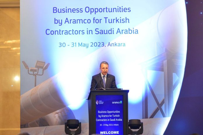 TMB ve Aramco işbirliğinde Ankara’da düzenlenen “Suudi Arabistan’da İş Fırsatları” konulu etkinliğe, 80 dolayında Türk müteahhit ve teknik müşavirlik firmasından temsilciler katıldı. Toplantıda açılış konuşmasını yapan TMB Başkanı M. Erdal Eren, Suudi Arabistan ile işbirliğinin yansıması olarak Saudi Aramco ile çalışmaktan memnun olduklarını belirtti. Eren, Suudi Arabistan’ın Türk müteahhitlerin yurt dışı faaliyetlerinde yaklaşık 25 milyar dolar tutarındaki 386 proje ile altıncı ülke konumunda yer aldığını, iki ülke arasında yaşanan sıkıntıların geride kaldığını ve Aramco’nun yeni dönem projelerinde yer alarak Suudi Arabistan’ın kalkınma programlarına katkıda bulunmak istediklerini ifade etti.