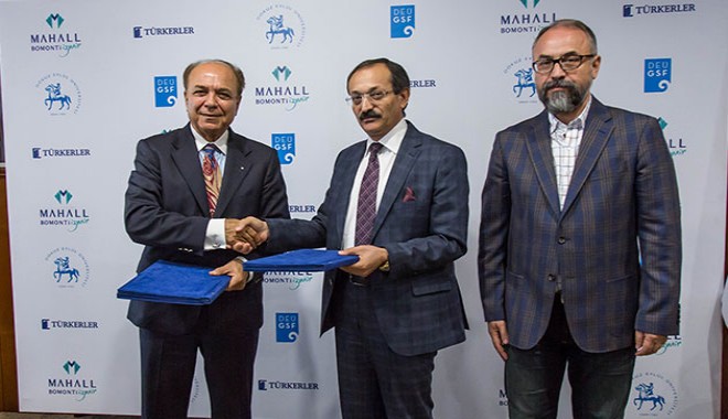 Dokuz Eylül Üniversitesi Rektörü Prof. Dr. Erdal Çelik ile Türkerler Holding Genel Koordinatörü Prof. Dr. Attila Sezgin iki kurum arasındaki işbirliğine ilişkin sözleşmeyi düzenlenen basın toplantısıyla imzaladı.