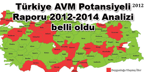2014 senesine kadar geliştirilmekte olan projeler dikkate alındığında İzmir’in ve Kocaeli’nin bugün ihtiyaç olmasına rağmen 2014’de doygunluğa ulaşacağı, Muğla’nın ise her iki dönemde de ihtiyaç duyduğu; Gaziantep, Eskişehir, Tekirdağ, Antalya, Mersin, Adana, Ankara gibi illerimizin ise 2012’de doygun olduğu ve 2014’de de halen doygun kalacağı tespit edilmiştir. 2014 senesinde toplam 35 şehrin doygun olması beklenmektedir. Bu analizlerde 2014 senesine kadar planlanan ve projelendirildiği açıklanan AVM projeleri dikkate alınmıştır. Kayıp AVM alanı olmayacağı düşünülmüştür.