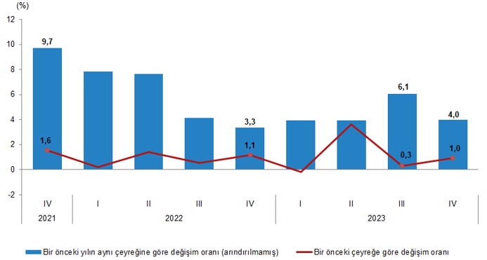 GSYH 2023 yılı dördüncü çeyreğinde %4,0 arttı