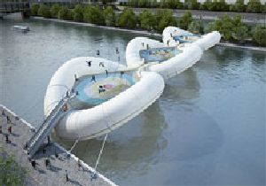 Mimarlık şirketi AZC, Fransa'nın başkenti Paris'e şişme köprü inşa edecek. Köprü, 3 farklı trambolinin birbirine bağlanması ile kurulacak.