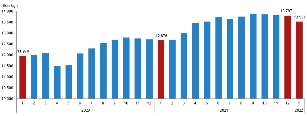 Ücretli çalışanlar, Ocak 2022