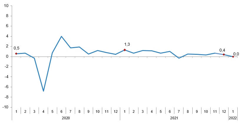 Ücretli çalışanların aylık değişim oranları (%), Ocak 2022
