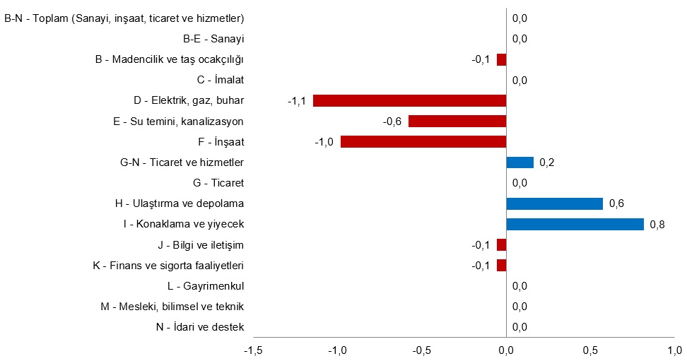 Sanayi, inşaat ve ticaret-hizmet sektörleri toplamında ücretli çalışan sayısı 2022 Ocak ayında bir önceki aya göre değişmedi.