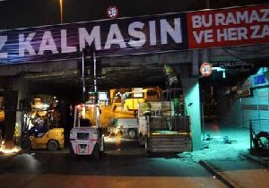Öte yandan, ramazan ayına denk gelen güçlendirme ve tamirat çalışmalarında görevli belediye işçilerinin, sahur sofralarını alt geçidin altında kurdukları gözlendi.