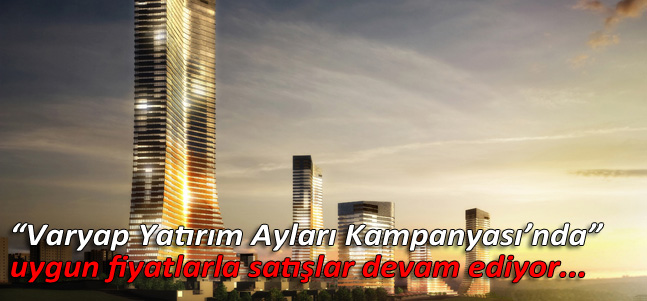 Varyap Yatırım Ayları çerçevesinde Varyap Plaza Pendik’te fiyatlar KDV dahil 250 bin TL; dünyanın en iyi mimari projesi seçilen Varyap Meridian’ de ise KDV dahil 420 bin TL’den başlıyor.