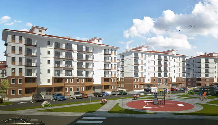İnşaat yapım ihalesi haziran 2018’de yapılan proje genelindeki 504 konutun 108’i 2+1 ve 132’si de 3+1 planında tasarlandı.