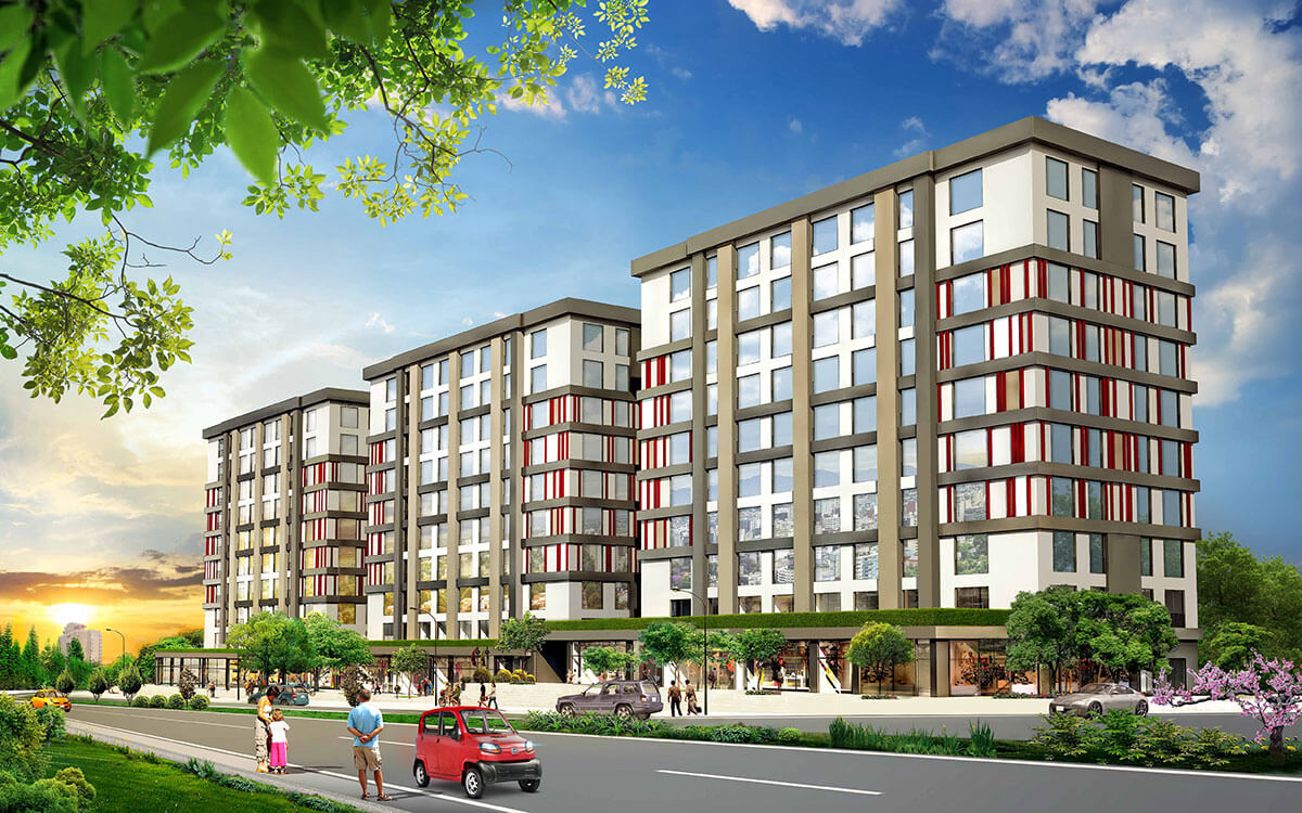 Proje sadece 1+1’lerden oluşuyor. Dairelerin büyüklükleri de 63 – 64 ve 66 metrekarelerden oluşuyor.