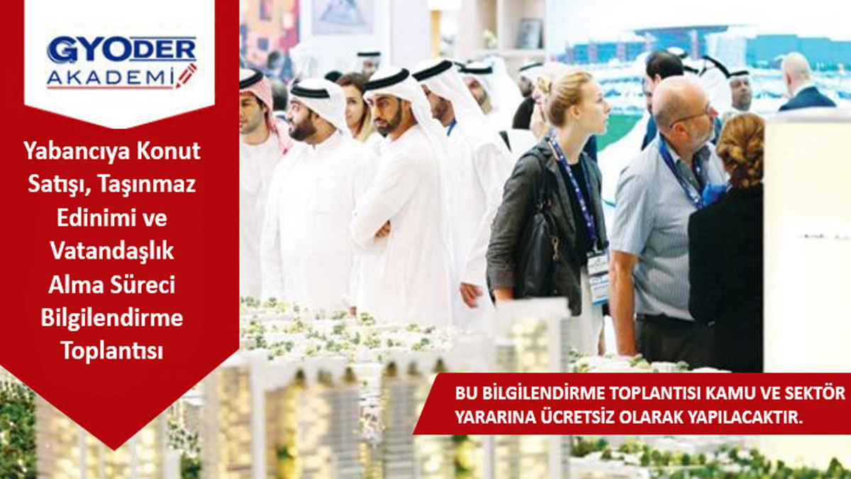 GYODER Akademi’nin İçişleri Bakanlığı Yabancı Yatırımcılar Vatandaşlık Müracaat Ortak Ofisi’nin destekleriyle sektörü bu konuda bilgilendirmek adına düzenleyeceği toplantı ile yabancıya gayrimenkul satışı ve vatandaşlık alma süreci tüm yönleriyle ele alınacak ve pratik hayatta karşılaştığınız sorular en yetkili kişiler tarafından yanıtlanacaktır.