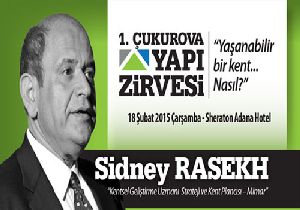 Kanadalı ünlü mimar, şehir planlamacısı, sürdürülebilir kent planlama uzmanı Sidney Rasekh 18 Şubat 2015 günü Adana’da “1. Çukurova Zirvesi”nde, Çukurova bölgesinin yerel yöneticileri, müteahhitleri, mimarları, iç mimarları ve yapı sektörünün tüm profesyonelleri ile buluşuyor.