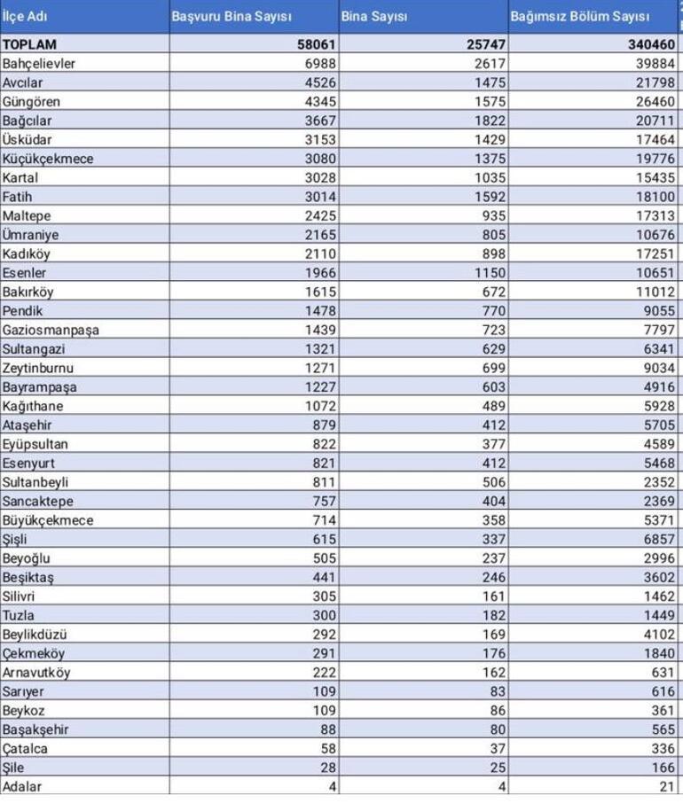 “İstanbullular, Yarısı Bizden kampanyamızı tuttu. 3 günde 1 milyondan fazla vatandaşımızın hayatını etkileyecek sayıda başvuru aldık. 340 bin 460 bağımsız birim için 58 bin 61 başvuru yapıldı. Konutları inceliyor, süreçleri başlatıyoruz. İstanbul’umuzda riskli yapı bırakmayacağız!”