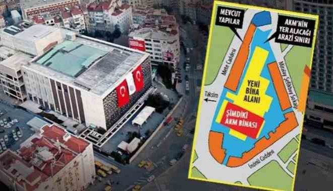 Cumhurbaşkanı Erdoğan’ın “İhtişamlı bir opera binası yapacağız” dediği Atatürk Kültür Merkezi’nde (AKM) yıkım için geri sayım başladı. AKM ve çevresi için plan değişiklikleri hazır. Hürriyet'ten Ömer Erbil'in haberine göre, Maliye ve İBB’ye ait parseller Kültür Bakanlığı’na devredildi. Yeni plana göre dolmuş durakları ve Libya Konsolosluğu’nun bir kısmı yeni yapılacak AKM’ye dahil ediliyor. AKM’nin oturduğu parsel 5 bin 794 metrekareden yeni planla 35 bin 206 metrekareye çıkıyor.