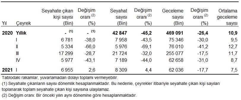 Türkiye İstatistik Kurumu (TÜİK) Hanehalkı Yurt İçi Turizm 2021 1. Çeyrek sonuçlarını yayınladı.