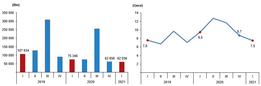 Geceleme sayısı, I. Çeyrek, 2021 Ortalama geceleme