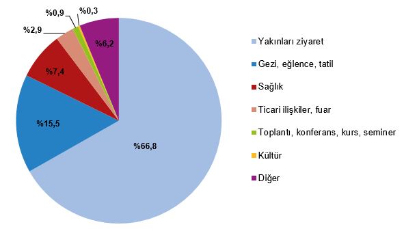 Yakınları ziyaret amacı ile yapılan seyahatler %66,8 ile ilk sırada yer aldı