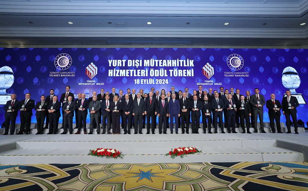 Cumhurbaşkanı Recep Tayyip Erdoğan, Türkiye Müteahhitler Birliğince bir otelde düzenlenen, Yurtdışı Müteahhitlik Hizmetleri Başarı Ödülleri Töreni’ne katıldı. Ödül alan firmaları ve temsilcilerini tebrik eden Erdoğan, firmalarla birlikte işçisinden mühendisine, yöneticisine … Yurtdışı Müteahhitlik Hizmetleri Başarı Ödülleri Töreni Cumhurbaşkanı Erdoğan’ın katılımıyla gerçekleştirildi.. okumayı sürdür