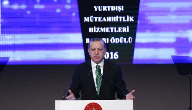 Cumhurbaşkanı Recep Tayyip Erdoğan, dünyanın en büyük 250 müteahhitlik firması arasında yer alan Türk firmalarını ödüllendirdi. Ekonomi Bakanlığı ve Türkiye Müteahhitler Birliği tarafından dün Ankara'da düzenlenen Yurtdışı Müteahhitlik Hizmetleri Ödül Töreni'ne katılan Erdoğan, şu mesajları verdi: