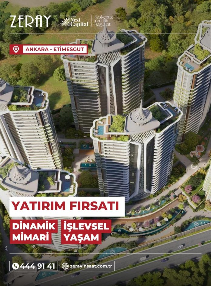 Zeray İnşaat’ın Ankara’nın Etimesgut ilçesi Bağlıca mevkiinde 34 bin 769 metrekare alan üzerinde yüksek katlı 6 blok halinde tasarladığı Zeray Next Capital projesi konut ve ticari alanlardan oluşuyor.